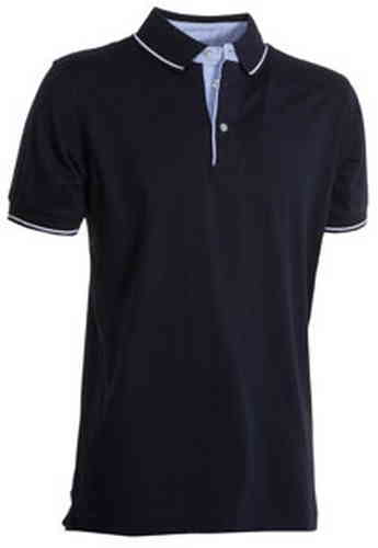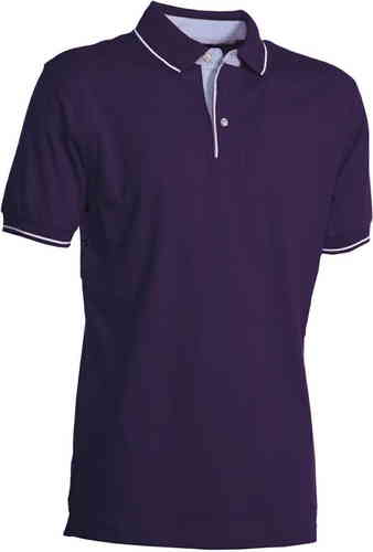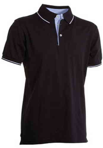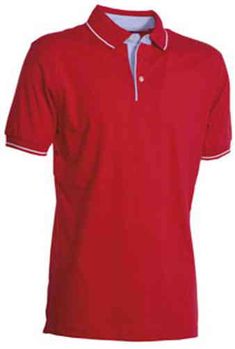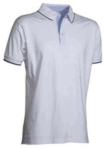 Polo da uomo a manica corta a tre bottoni bianchi, con interno collo, patta e spacchetti laterali in oxford celeste, colletto e bordo manica in rib con fine profilo a contrasto, occhielli sotto braccio, spacchetti laterali con cucitura di rinforzo, nastro