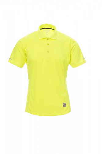 Polo da uomo tecnica-sportiva manica corta a tre bottoni in tinta, manica raglan, doppia cucitura laterale per una migliore vestibilità, fondo sagomato e più lungo sul retro, inserto riflettente allamaniche e retro collo, nastratura del collo a contrasto,