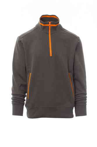 Felpa da uomo, mezza zip in plastica in colore a contrasto, cursore in metallo, profilo a contrasto nel colletto e alle tasche laterali. Manica a giro, collo, polsini e vita in costina elasticizzata,cuciture rinforzate.