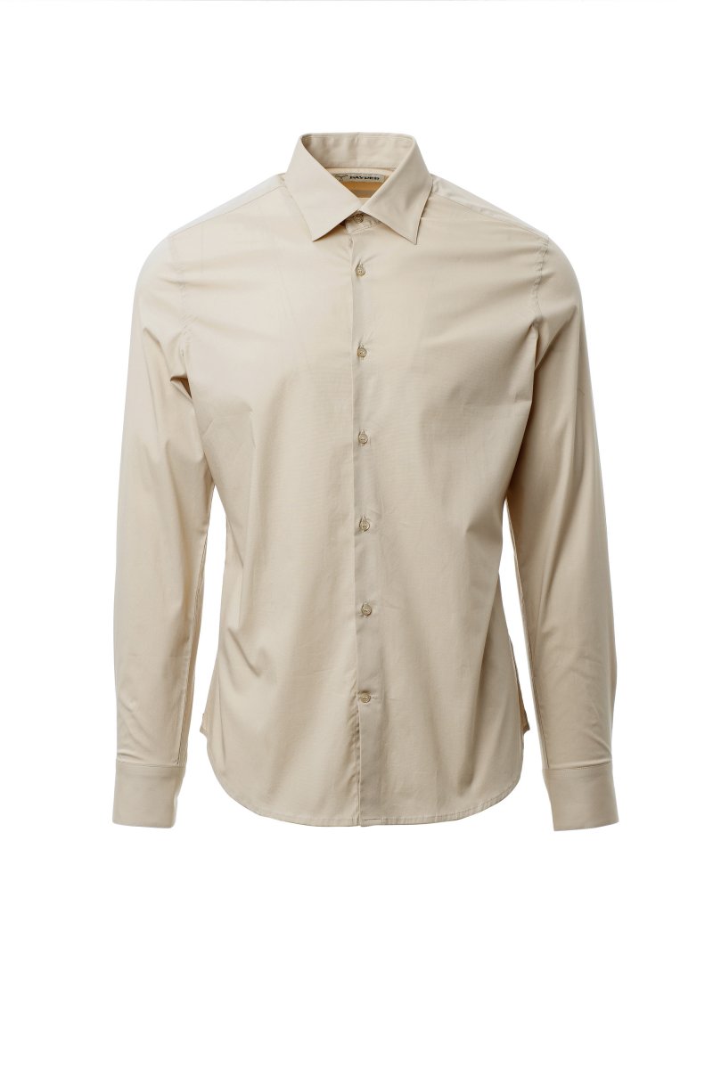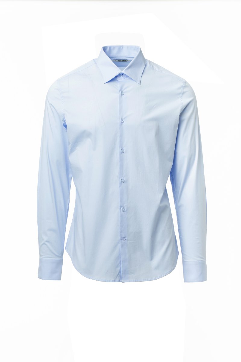 Camicia da uomo, vestibilità slim. Collo italiano sagomato con nasello chiuso e stecche estraibili. Cannoncino ripiegato all’interno e abbottonatura a vista. Bottoni effetto madreperla. Carré liscio sul retro. Pinces di ripresa a metà schiena. Mosca di te