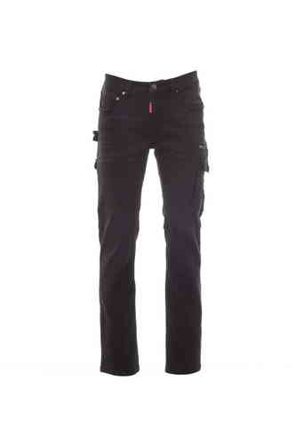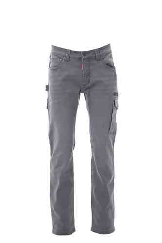 Pantalone multitasche uomo in taglio jeans,1 tascone laterale LOCK SYSTEM con rinforzo interno, 1 tasca con zip, 1 porta metro, 1 portasmartphone, 1 porta martello, 1 taschino portapenne e cutter, chiusura con zip in metallo e bottone, passanti in vita, t