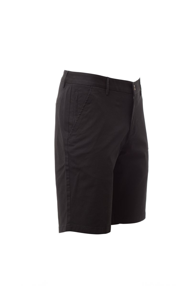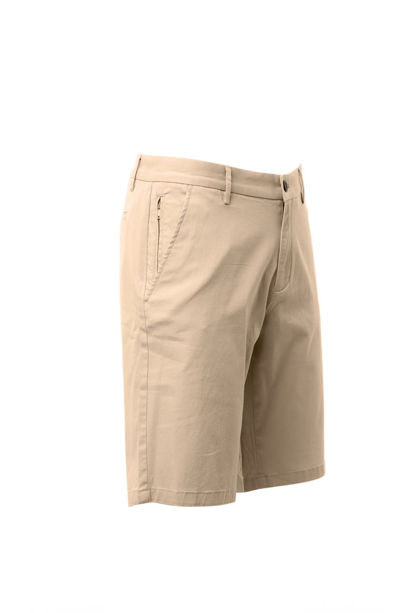 Bermuda classico da uomo, chiusura con zip e bottone, 2 tasche alla francese e 1 taschino chiuso con zip sul fianco destro, passanti sartoriali in vita, due tasche posteriori a filo con bottone.