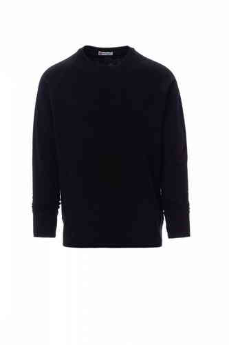 Felpa girocollo con maniche raglan, polsini e vita in rib elasticizzato e cucitura estetica a V al collo.